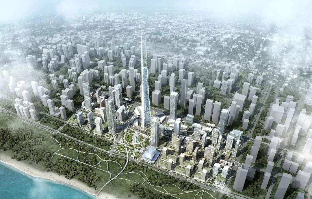 根据2019年5月项目规划方案批前公示,项目总建筑面积约65.09万方,其中办公约25万方,商业约3.95万方,住宅约7.97万方,原648米的主楼降为475米,其中主体部分85层442.65米,此外项目还包括2栋52层高度为200米的超高层住宅楼及2-3层的商业裙房,至今项目仍未正式开工。