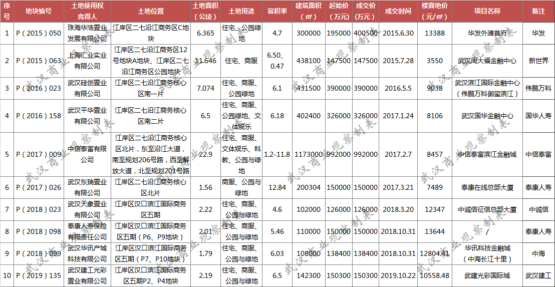 ▲汉口滨江国际商务区近年已出让地块情况一览