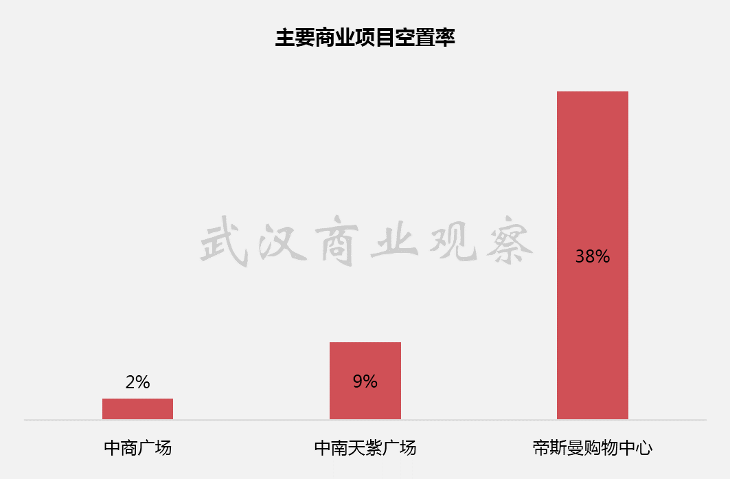 中商广场、中南天紫广场、帝斯曼购物中心三个项目的商铺空置率差异明显,中商广场空置率维持较低水平,中南天紫广场空置率在8%-10%的区间起伏,帝斯曼购物中心空置率高达38%,五至六层大面积空置,项目招商运营工作思路亟待调整。而星荟城仍处于招商阶段,暂未统计空置率,但当前招商进度并不理想。