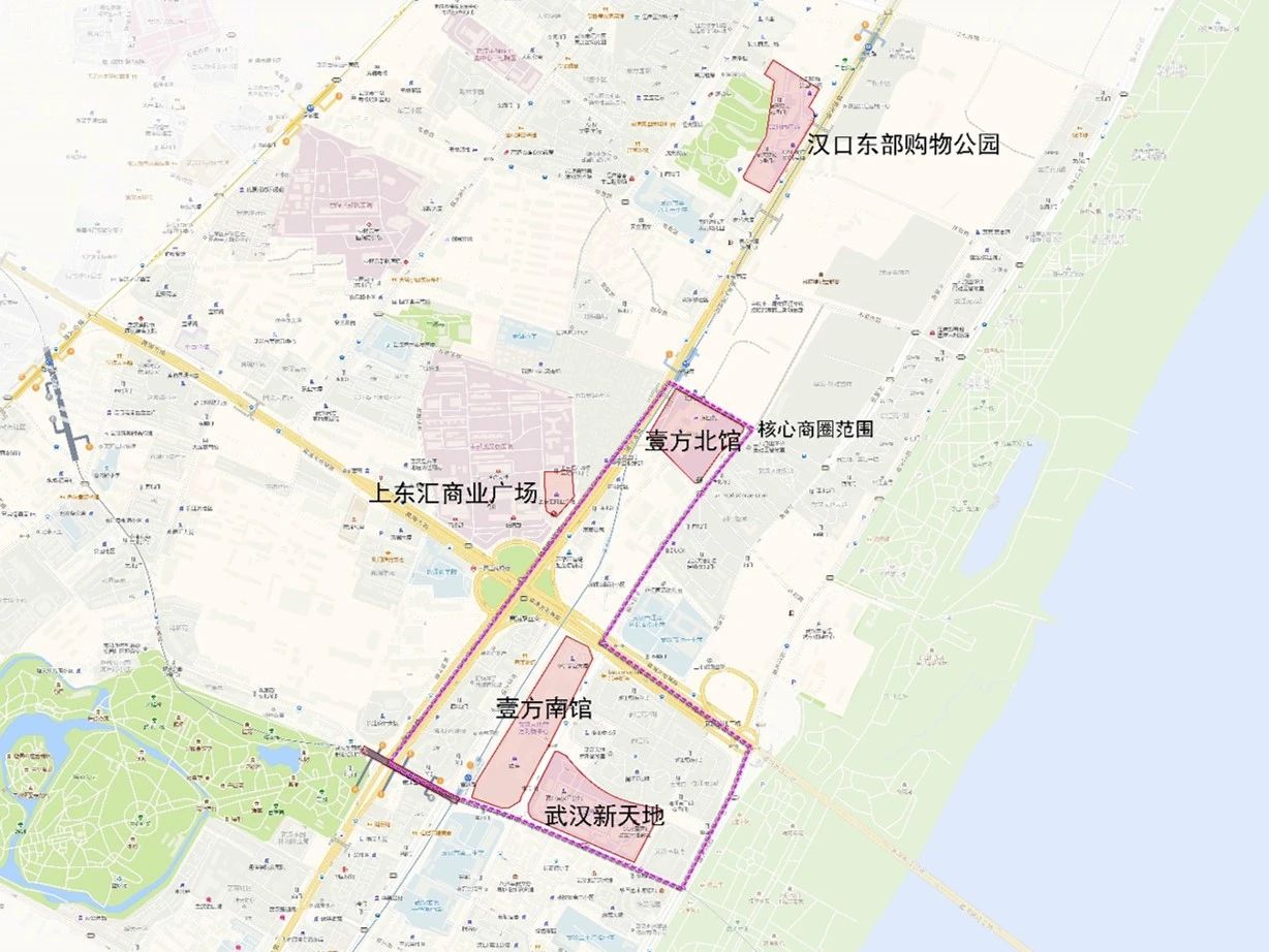 商圈范围:核心区域为武汉新天地、壹方南馆、壹方北馆构成的建筑组团及周边沿街底商